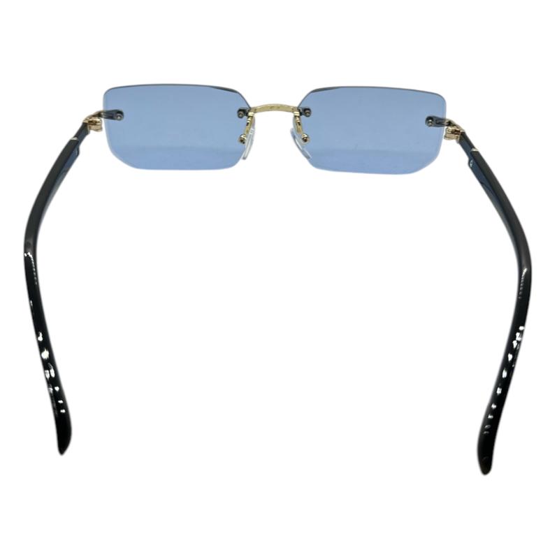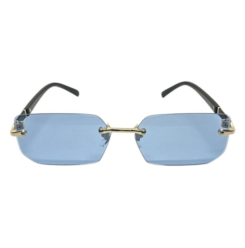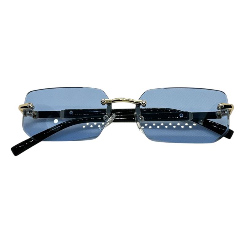 In conclusion, our blue rimless sunglasses are a great choice for anyone who wants a stylish and modern accessory that provides protection from harmful UV rays. The rimless design is perfect for those who want a more comfortable and modern look, making them a great choice for both men and women.